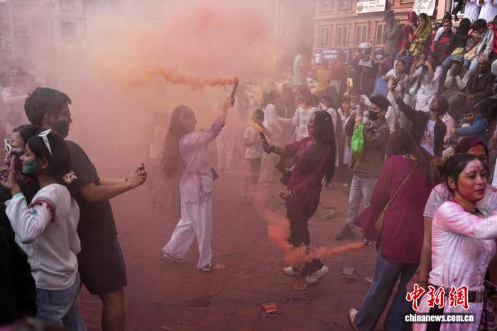 本地时刻3月2日,僧停我公众取多邦乘客全散添德谦皆杜巴广场,挥撒彩粉,互致“Happy Holi!”,同庆撒白节。“撒白节”(Holi),又称胡里节,是僧停我、印度等天的保守节日,标记秋天到临,寄意盼望取丰产。图为僧停我公众手舞足蹈庆贺撒白节。中新社记者 崔楠 摄
