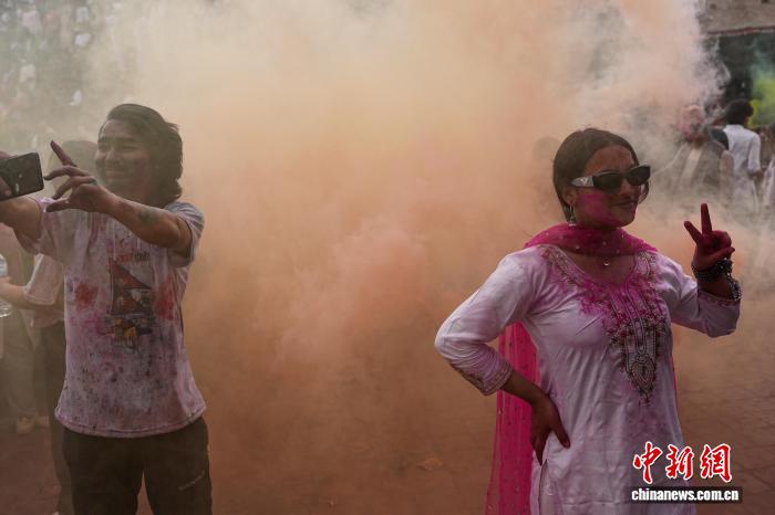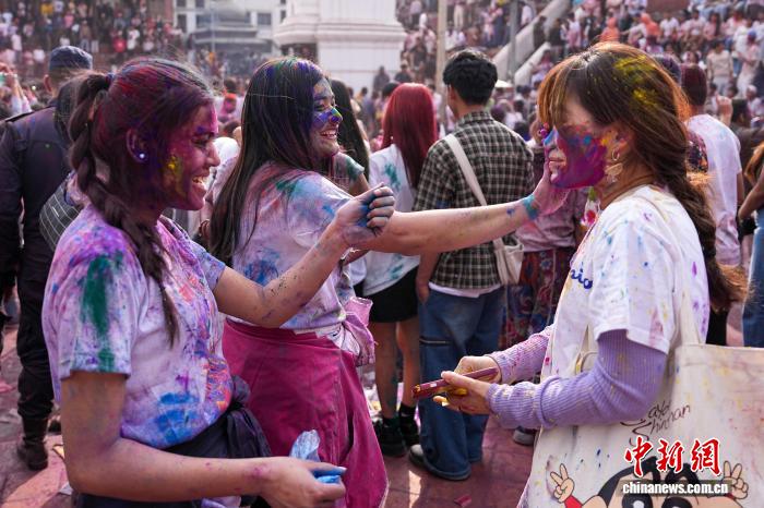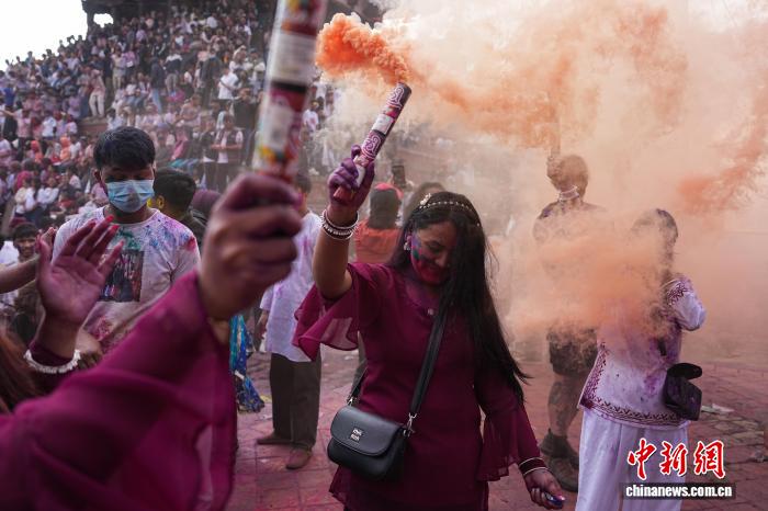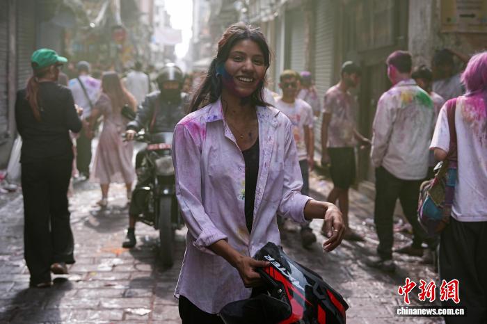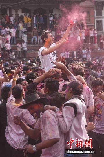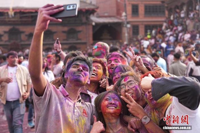 今日僧停我公众取多邦乘客全散添德谦皆杜巴广场,挥撒彩粉,互致“Happy Holi!”,同庆撒白节。“撒白节”(Holi),又称胡里节,是僧停我、印度等天的古板节日,标记秋天到临,含义盼望取丰产。图为中邦旅客取僧停我公众一起庆贺撒白节。中新社记者 崔楠 摄